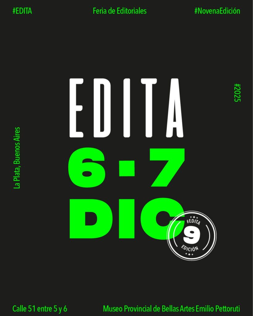 En diciembre llega la 9na. edición de la Feria Edita, el encuentro de editoriales independientes en la ciudad de La Plata, que este año se desarrollará el sábado 6 y domingo 7, con entrada libre y gratuita, en la Av. 51, entre las calles 5 y 6.